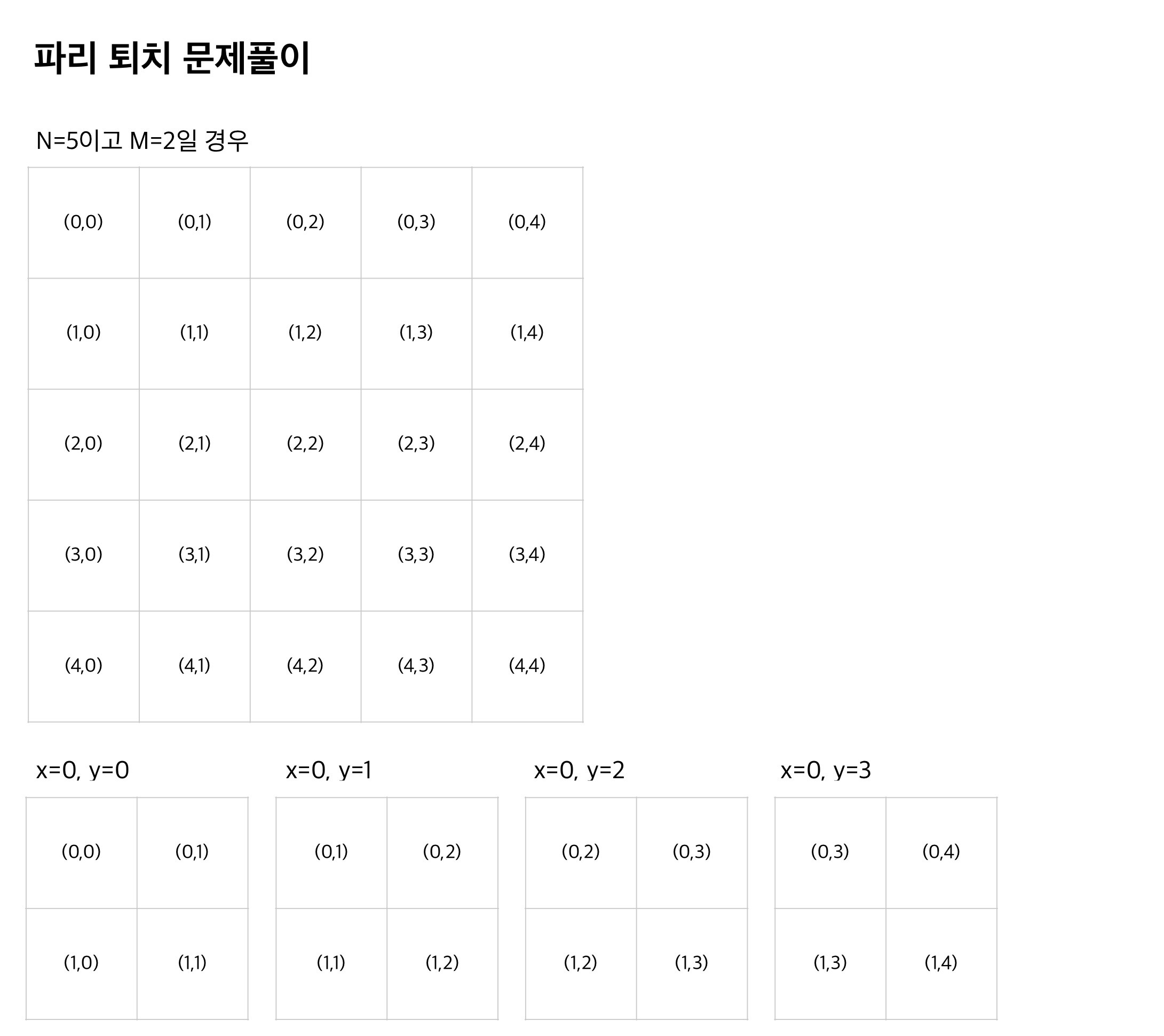 M x M 크기의 파리채를 한 번 내리쳐 최대한 많은 파리를 죽이고자 한다.
